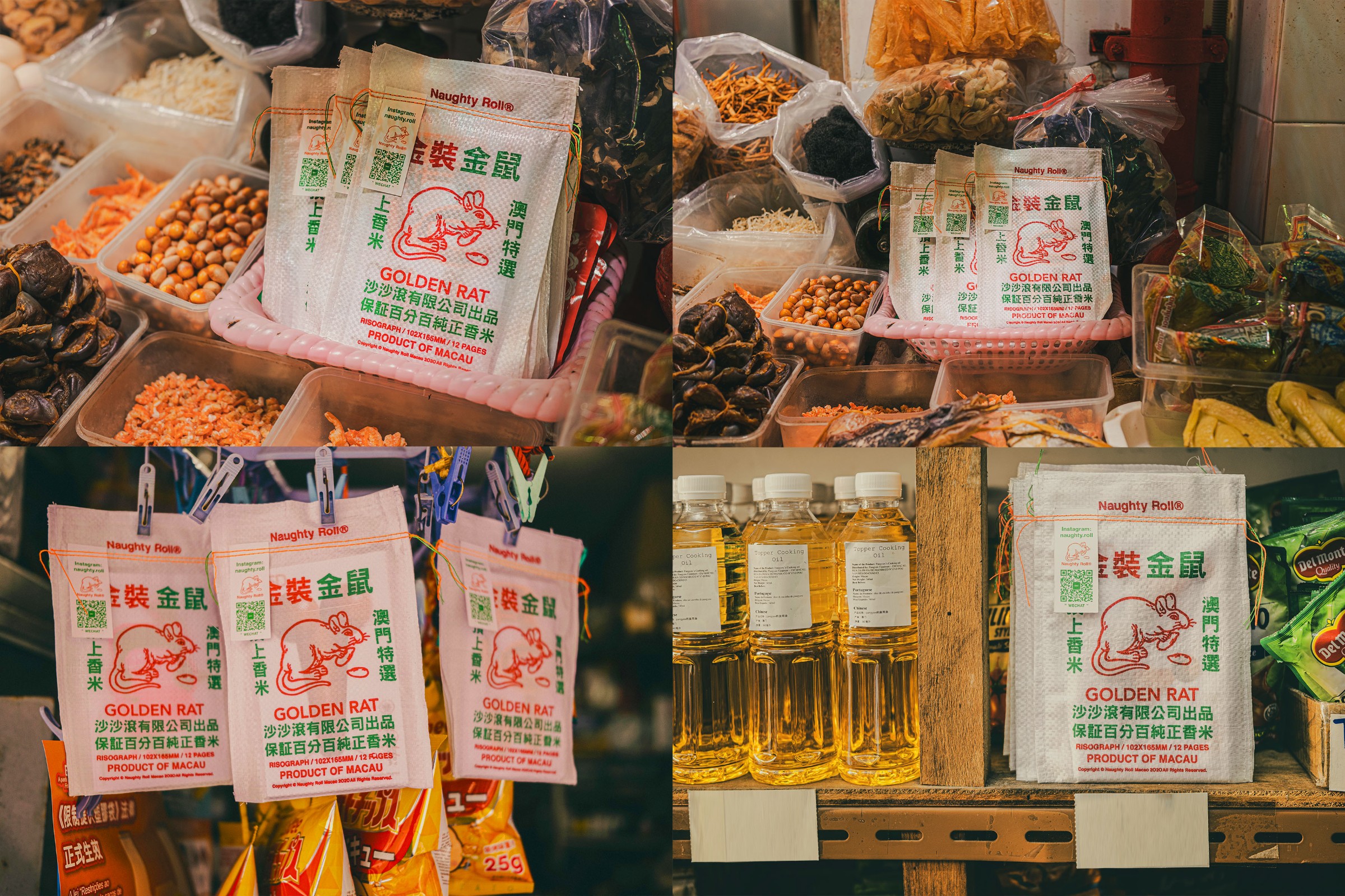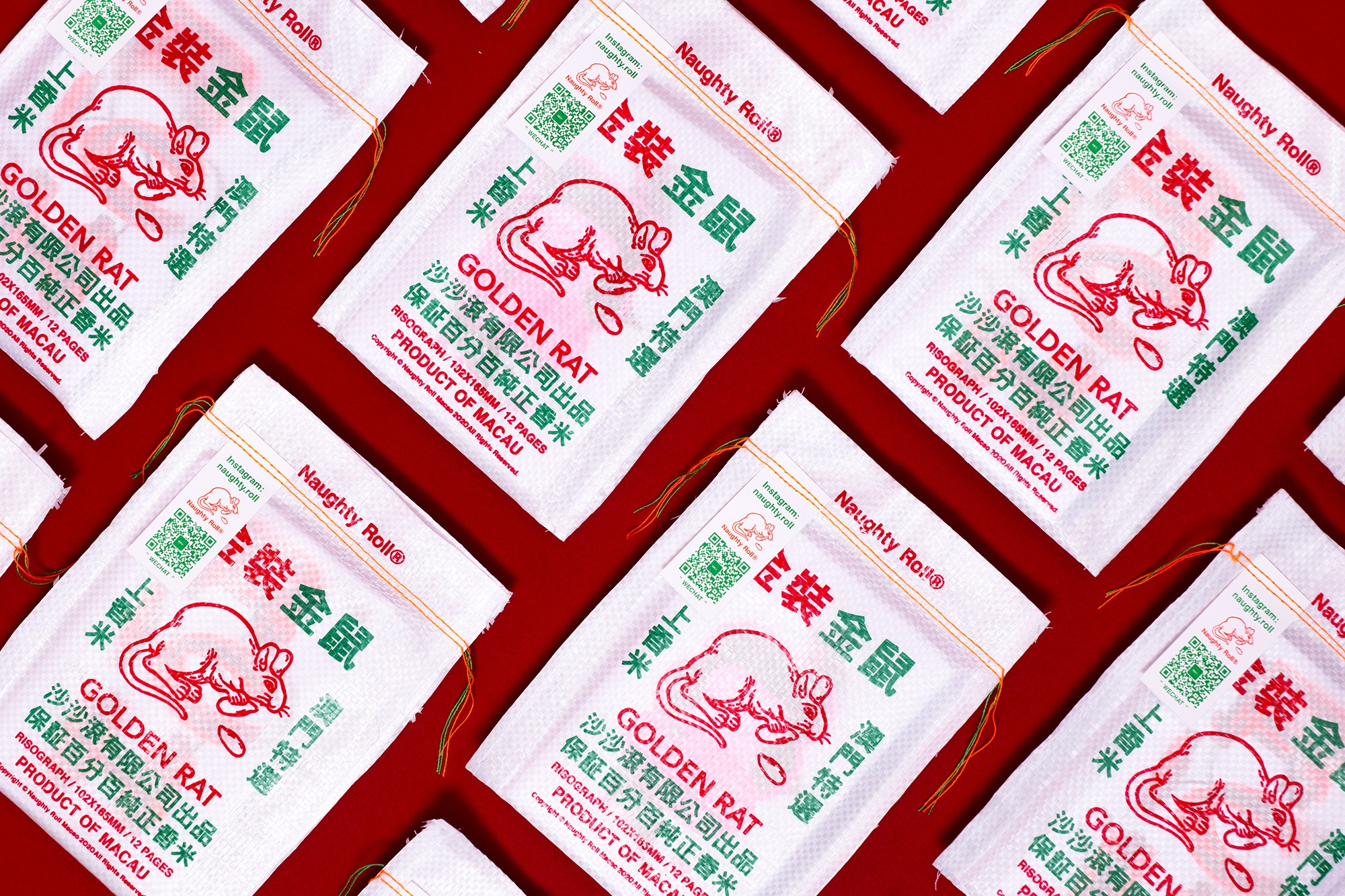 Chinese New Year stands as one of China's most cherished traditional festivals, a time when we exchange heartfelt blessings with loved ones. Celebrating the Year of the Rat, we've crafted twelve unique illustrations and employed Risograph printing techniques to create special greeting cards - each handwritten note carrying our warmest wishes. The packaging design draws nostalgic inspiration from classic Macau rice bags of our childhood, with their distinctive white background and bold red-and-green lettering. In keeping with this theme, we collected discarded rice sacks from local shops across Macau, carefully refurbishing and repurposing these materials. Every piece is ultimately hand-stitched, imbuing our products with an extra layer of warmth and vitality that only artisanal craftsmanship can provide.