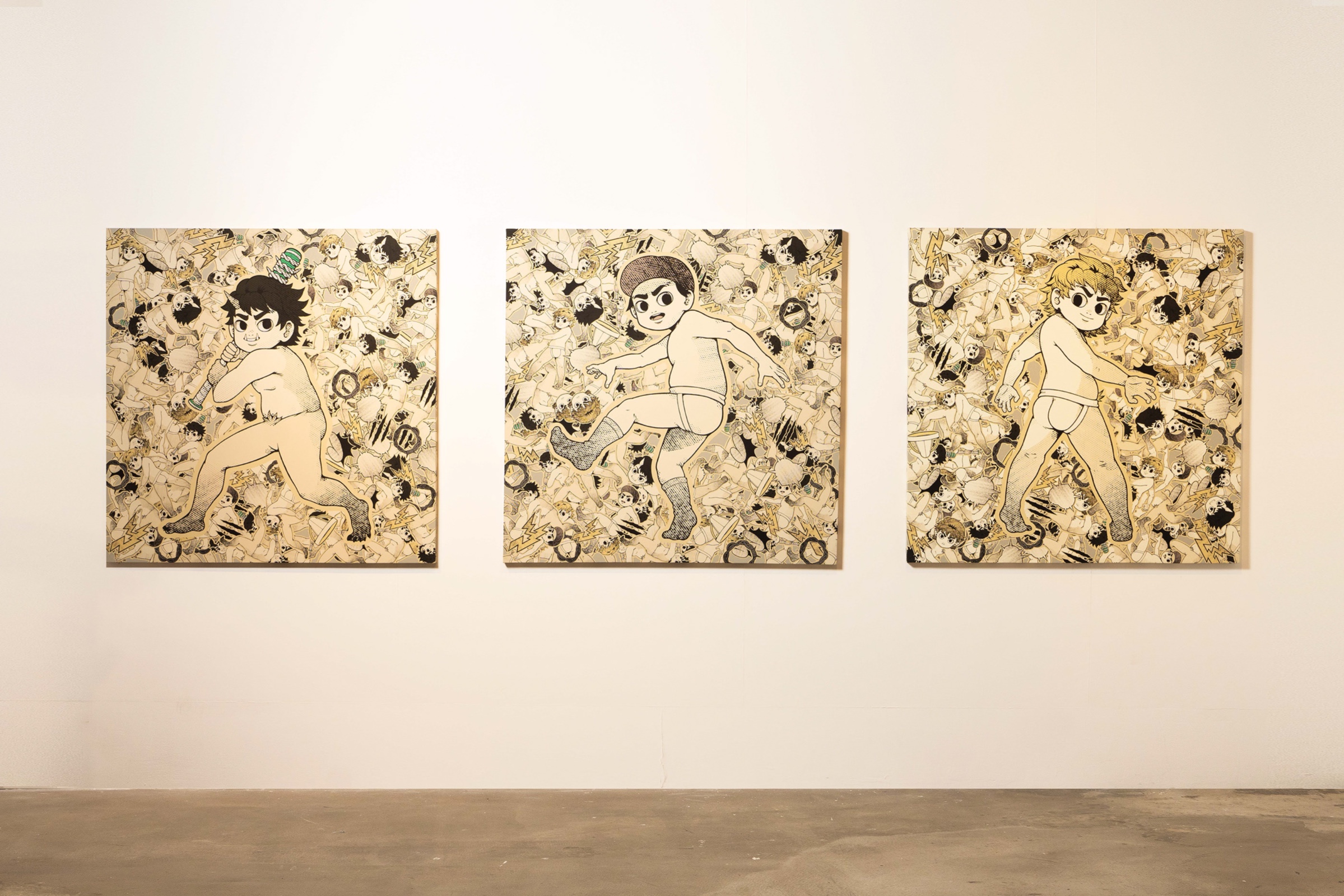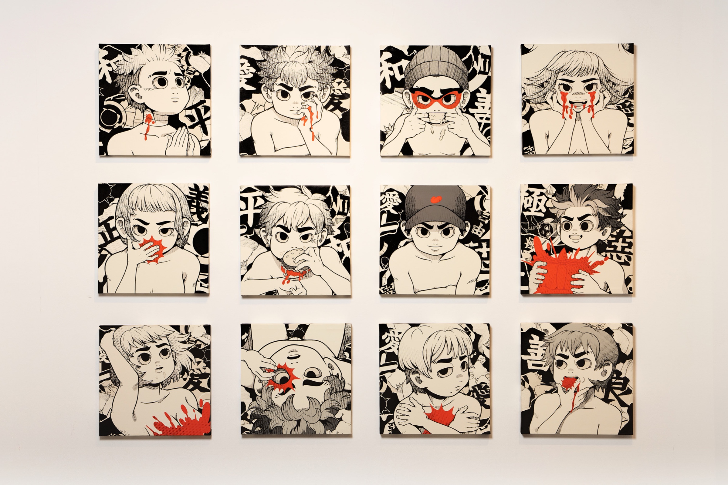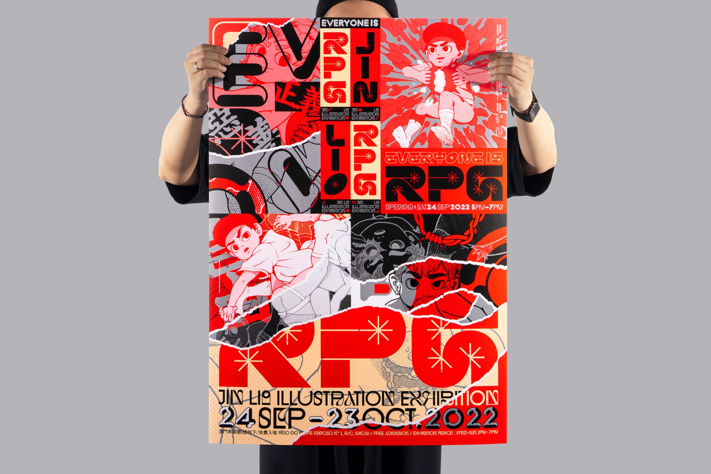 We believe that humans have both good and evil sides, and the exhibition "EVERYONE IS RPG" is a comic book style illustration by Jin Lio that delves into the various manifestations of human good and evil. The main visual design uses a variety of paper tearing effects and a large number of pixelated visual elements, as well as contrasting colours and printing effects, to set off the instability of human beings in their various extremes of character; the main visual also includes a handwritten Chinese calligraphic font of traditional Chinese thinking about the seven emotions and six sensory pleasures, creating an extraordinarily strong and gritty visual atmosphere. "EVERYONE IS RPG" means that each person plays a different role, each identity is mixed with different positive and negative personalities, and this instability and unpredictability is worth exploring and pondering.