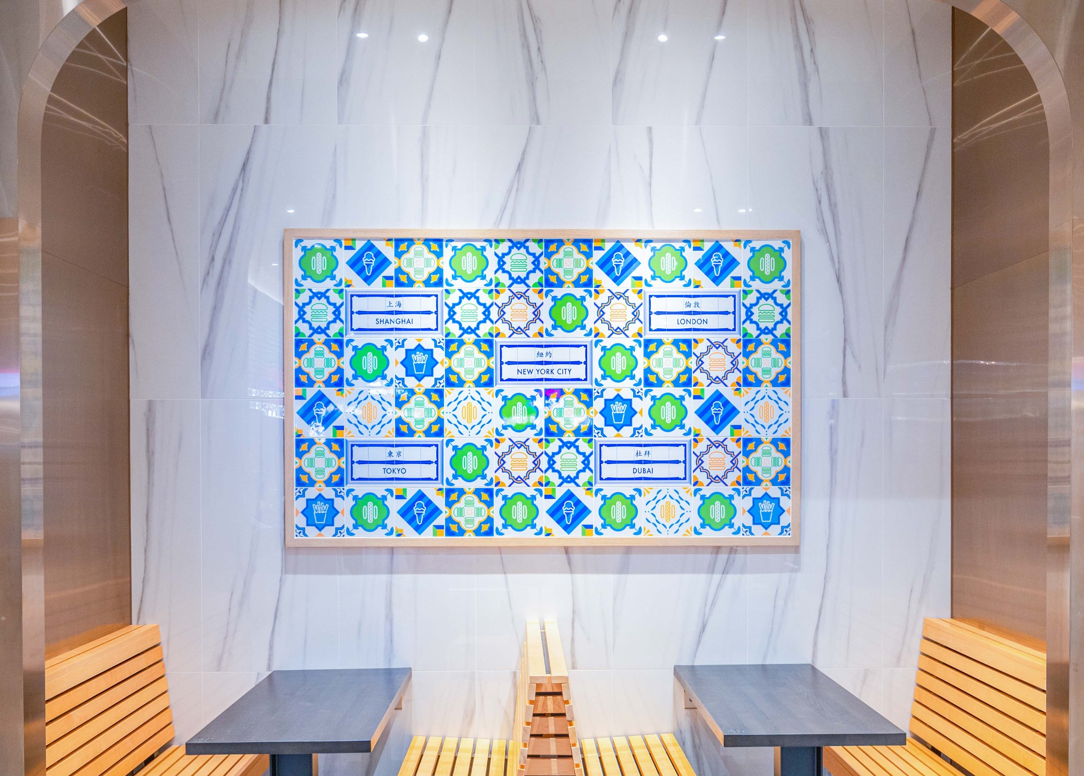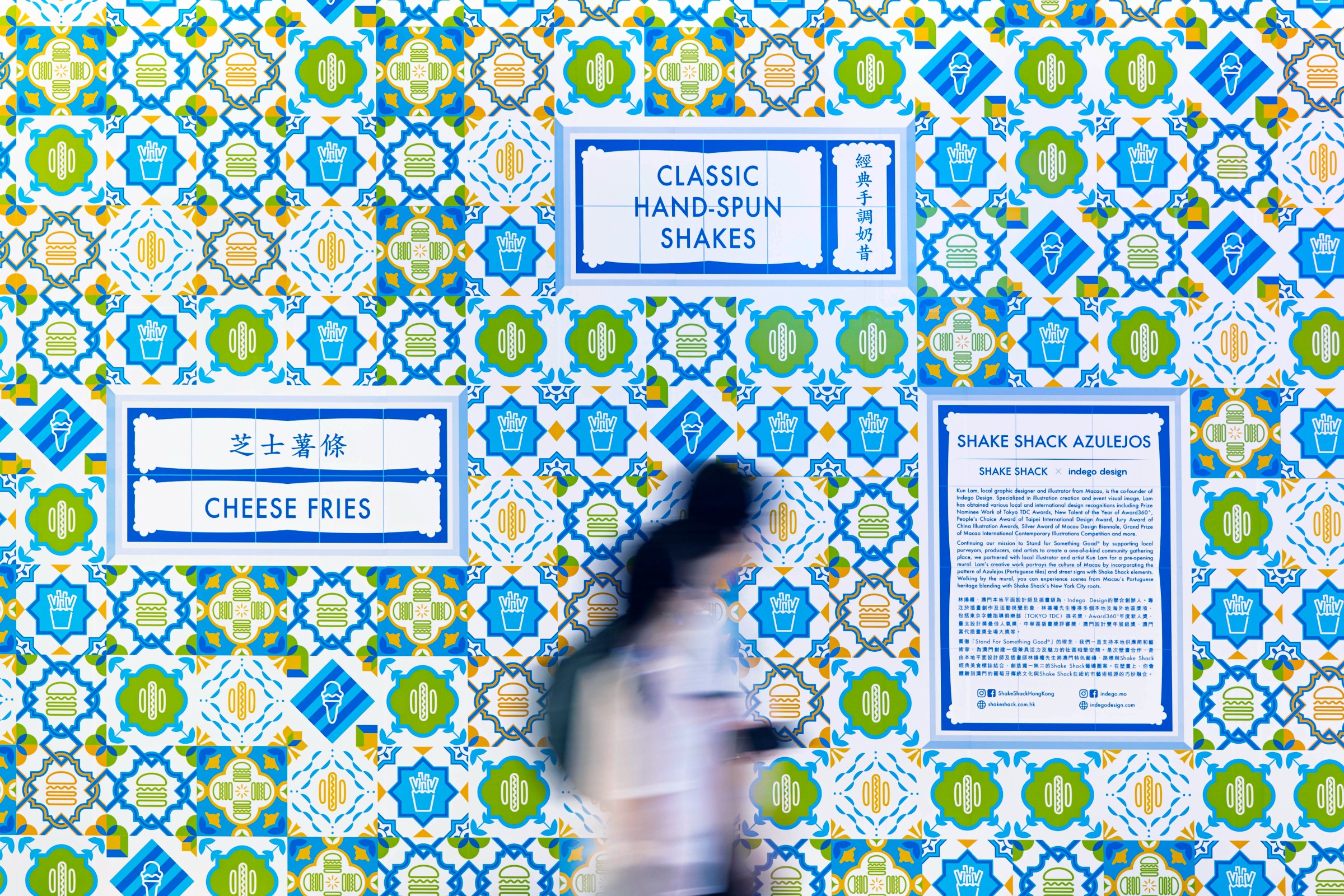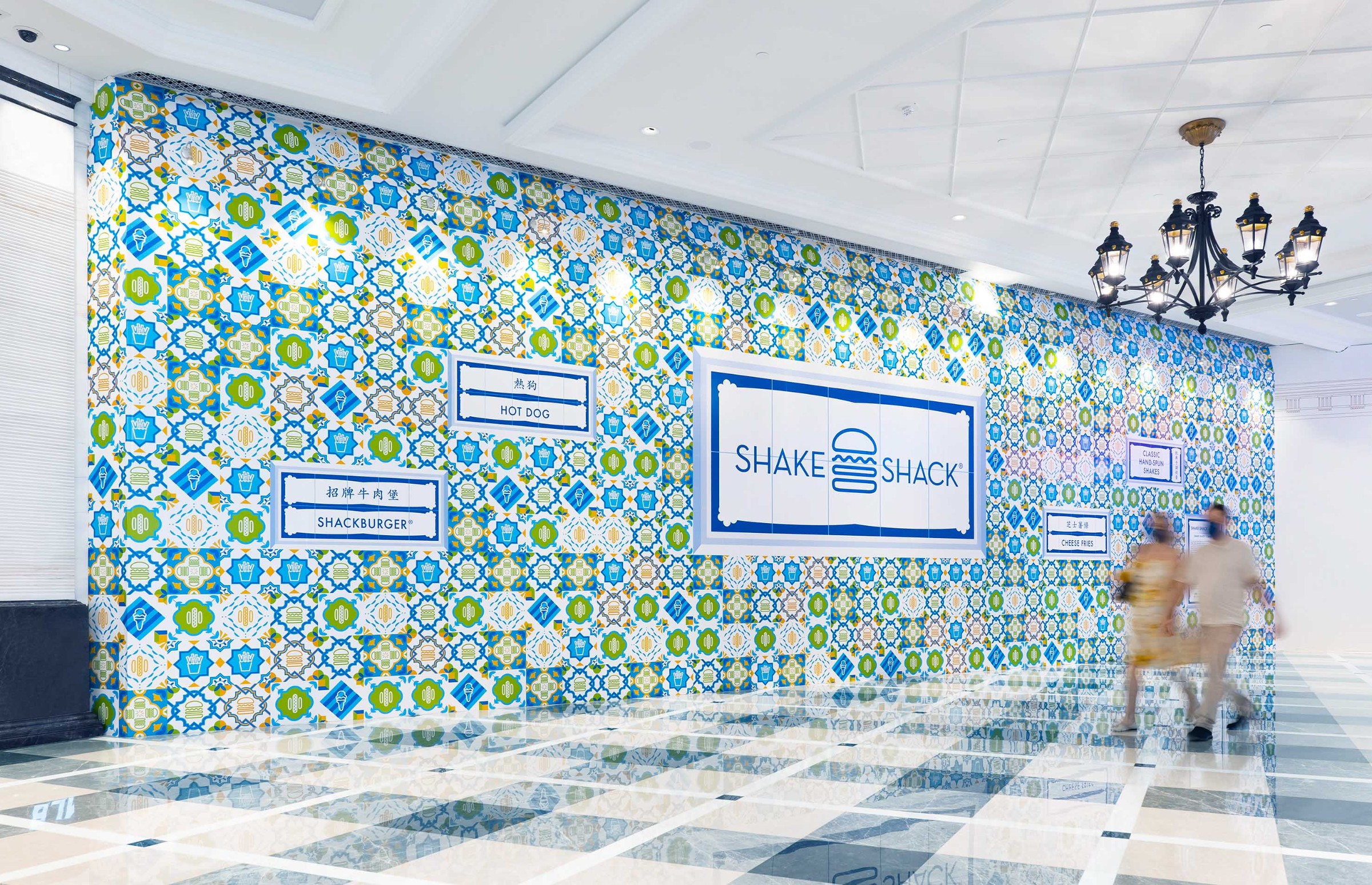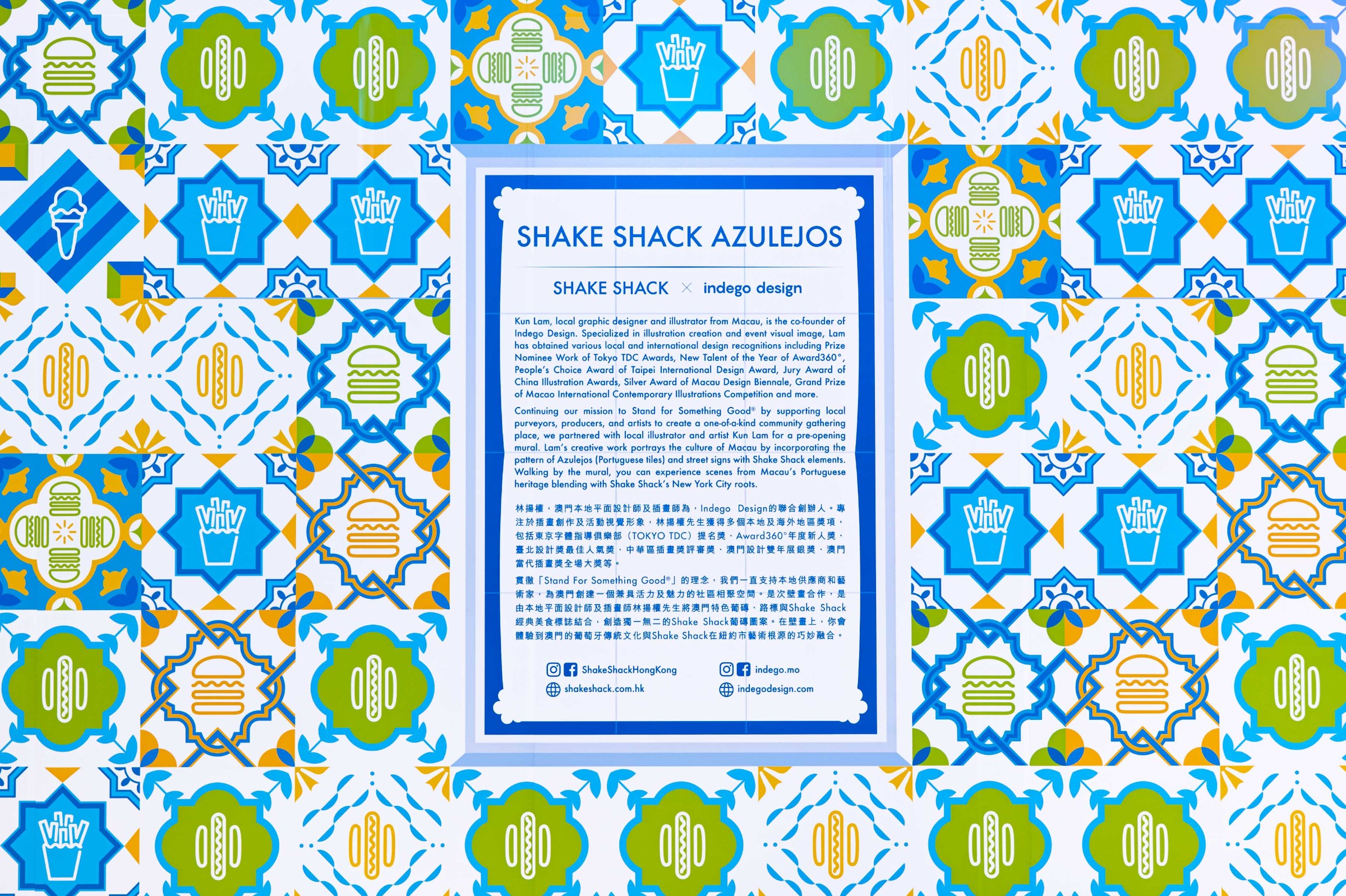 Continuing our mission to Stand for Something Good® by supporting local purveyors, producers, and artists to create a one-of-a-kind community gathering place, we partnered with local illustrator and artist Kun Lam for a pre-opening mural. Lam’s creative work portrays the culture of Macau by incorporating the pattern of Azulejos (Portuguese tiles) and street signs with Shake Shack elements. Walking by the mural, you can experience scenes from Macau’s Portuguese heritage blending with Shake Shack’s New York City roots.
