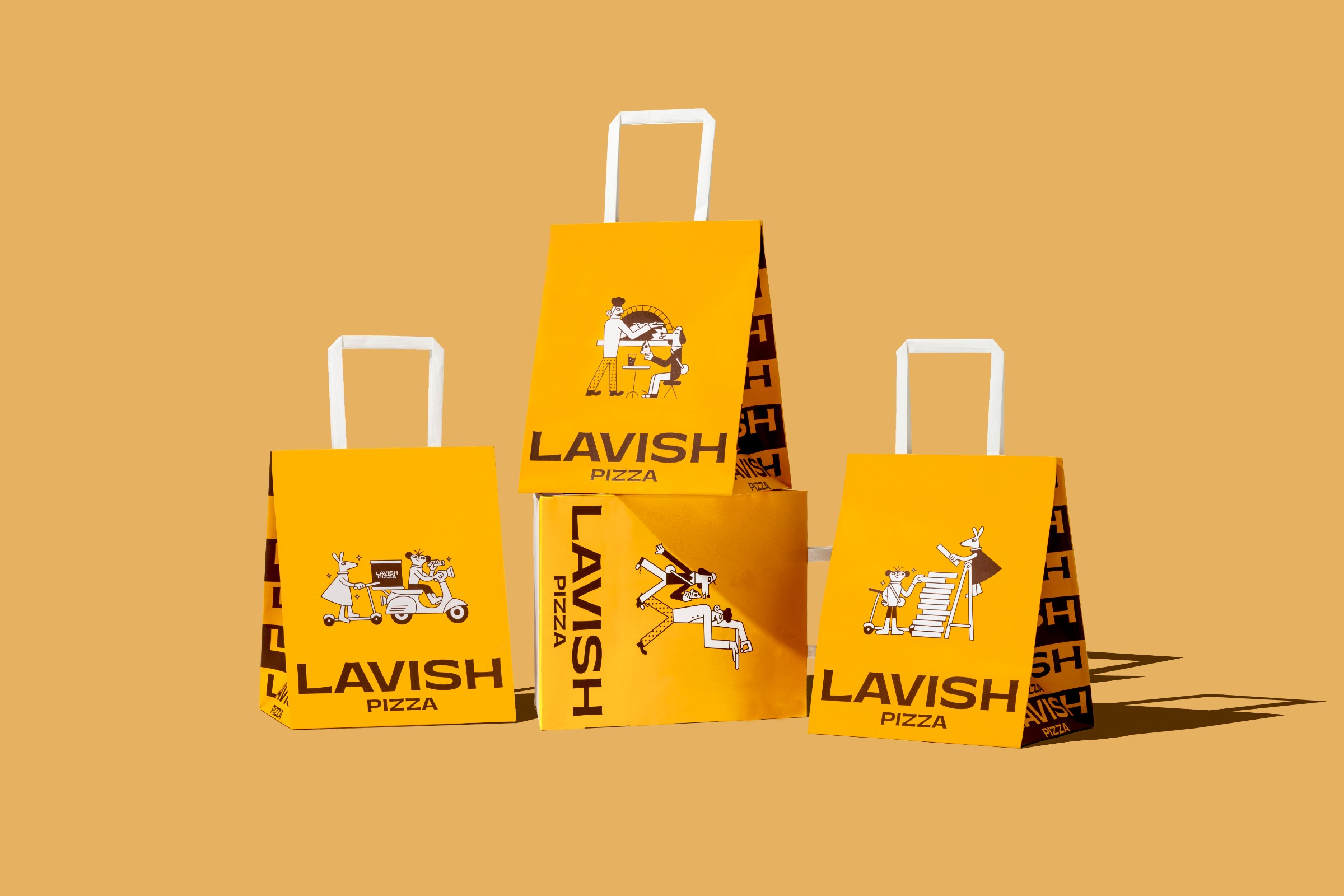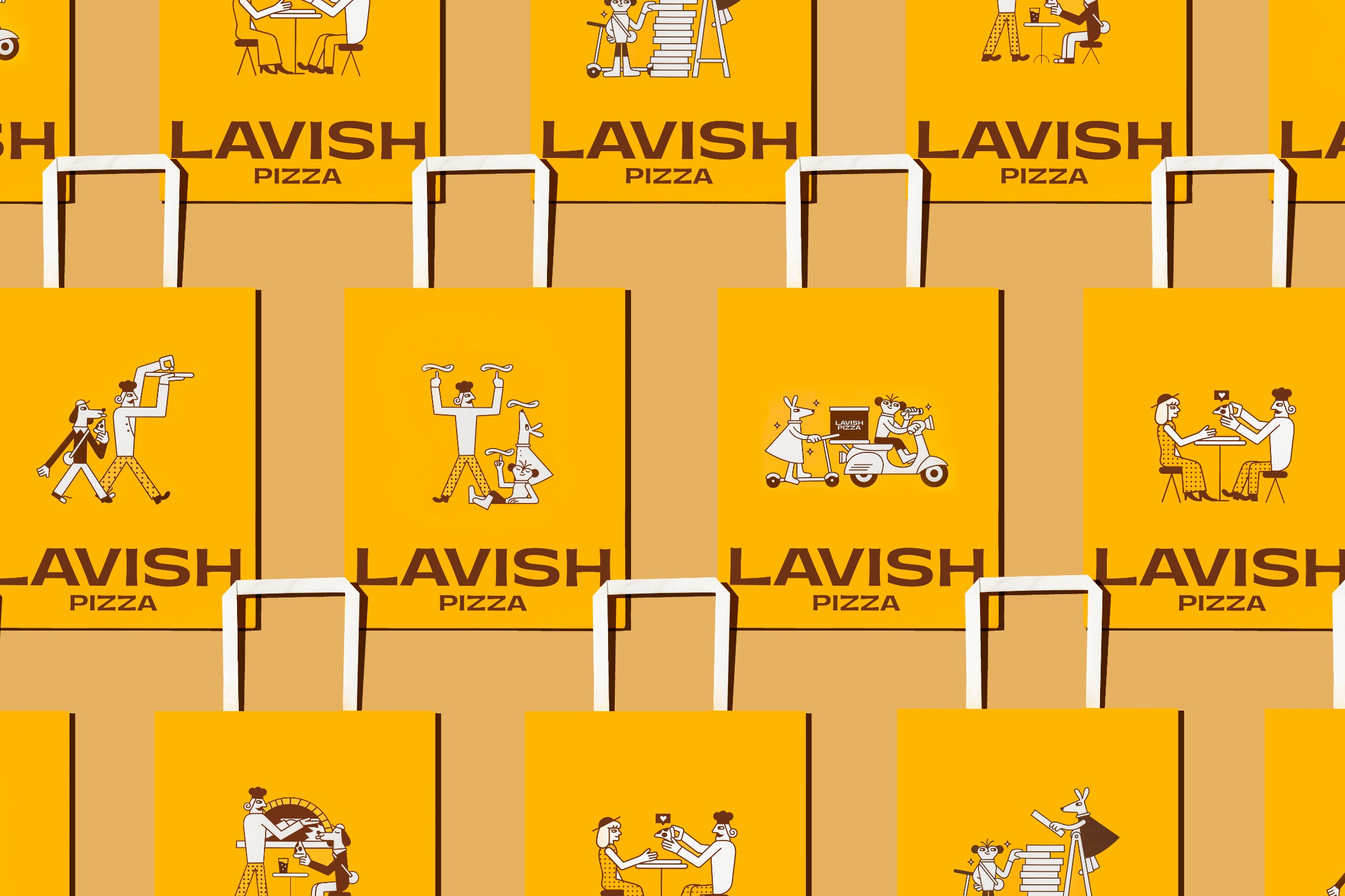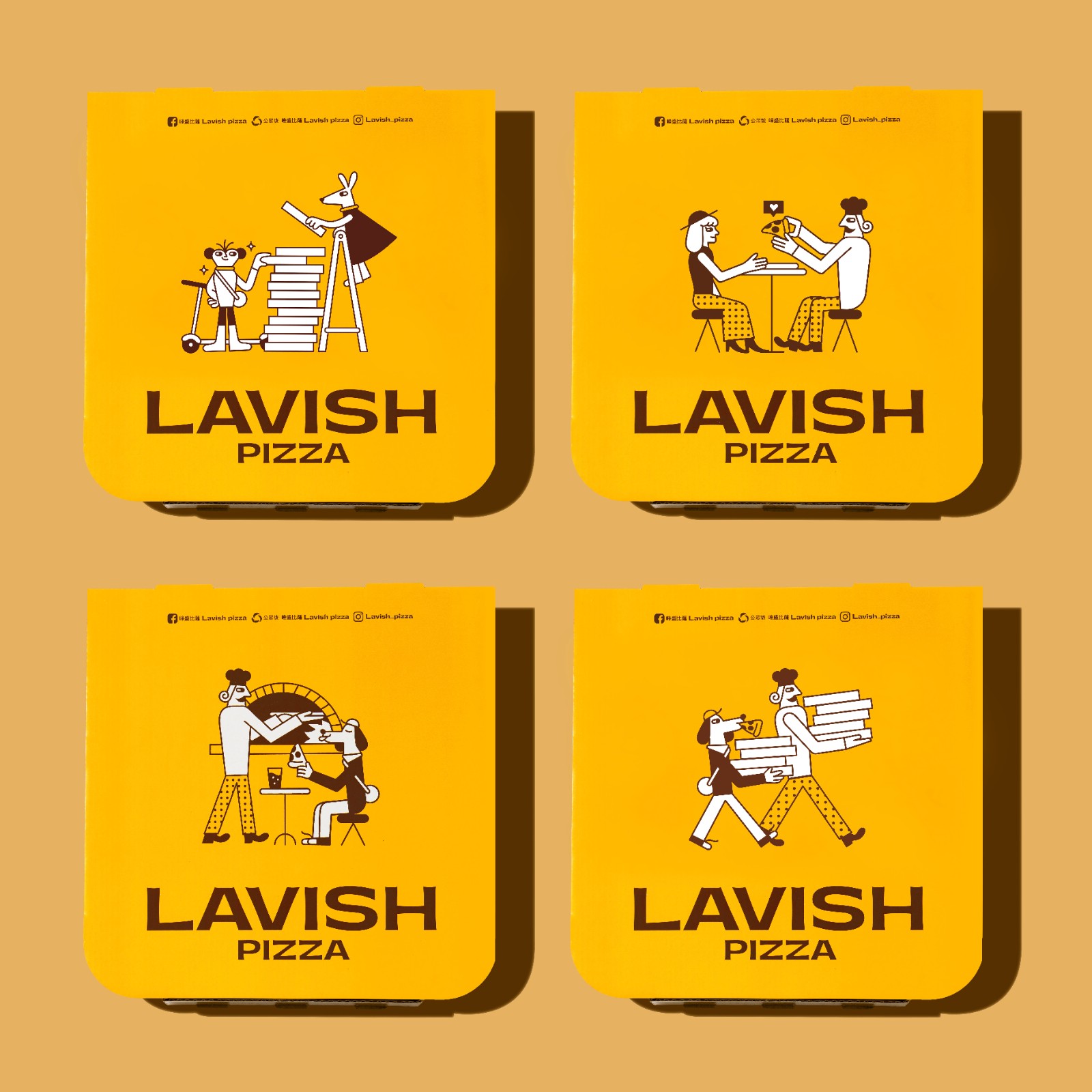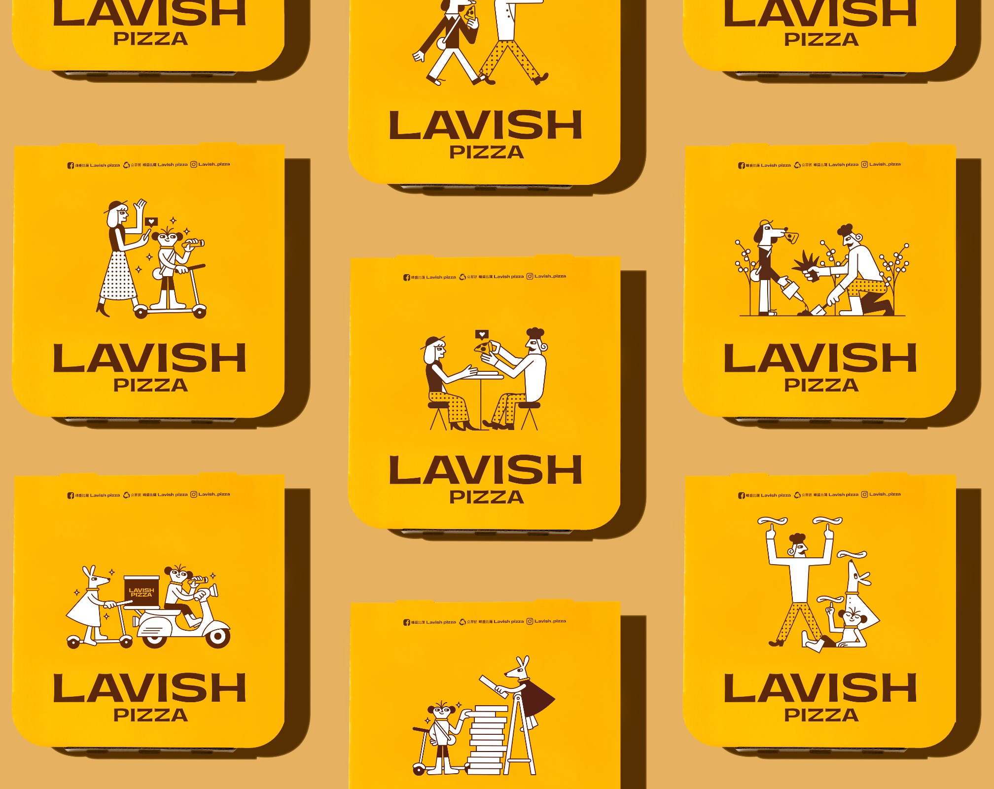 When doing the rebranding for Lavish Pizza, we use characters as the core visual of the brand. With the chef of Lavish Pizza as the main character Lavish, who is a chef who is obsessed with developing new pizzas. There is also a group of Lavish pizza lovers: a gluttonous dog that follows Lavish all the time, an office lady who loves discounts, and an alien KOL who always shares delicious food with his fans. The story of the brand occurs around these four main characters. In addition to upgrading the overall image, it also allows customers to have a stronger connection with the brand. The new visual image includes logos, fonts, colours and characters, etc., inheriting the innovative spirit of Lavish's continuous research and development, and bringing vitality into the design. This not only makes the visual refreshing but also makes the brand more contagious.