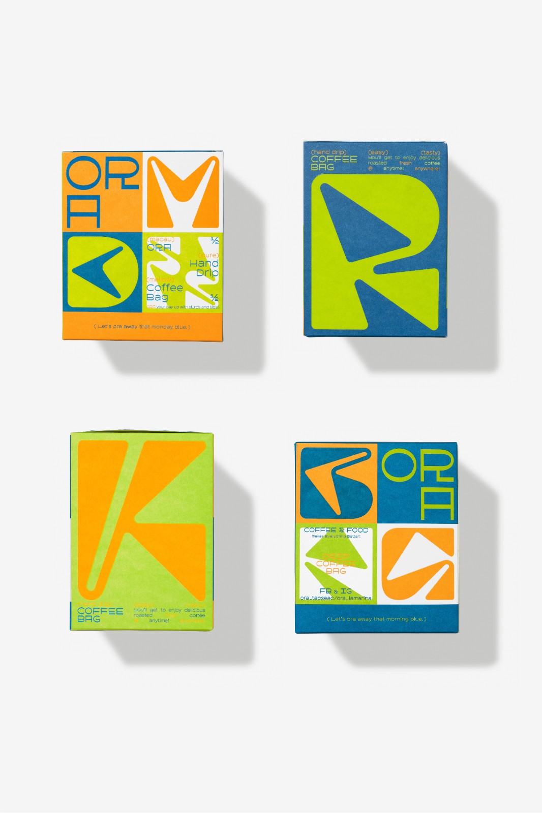 ORA is a renowned youth cultural hub in Macau that explores the connection between space and individuals while encouraging reflection on spiritual life. The brand is represented by three colored squares, symbolizing ORA, space, and people. To further shape its identity, ORA employs two contrasting typefaces—a structured block font that embodies the relationship between humans and their surroundings, and a dynamic script font that expresses passion and love for life.
