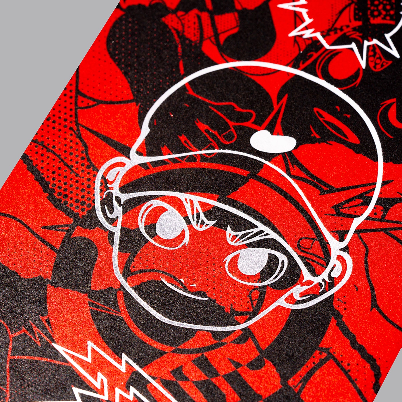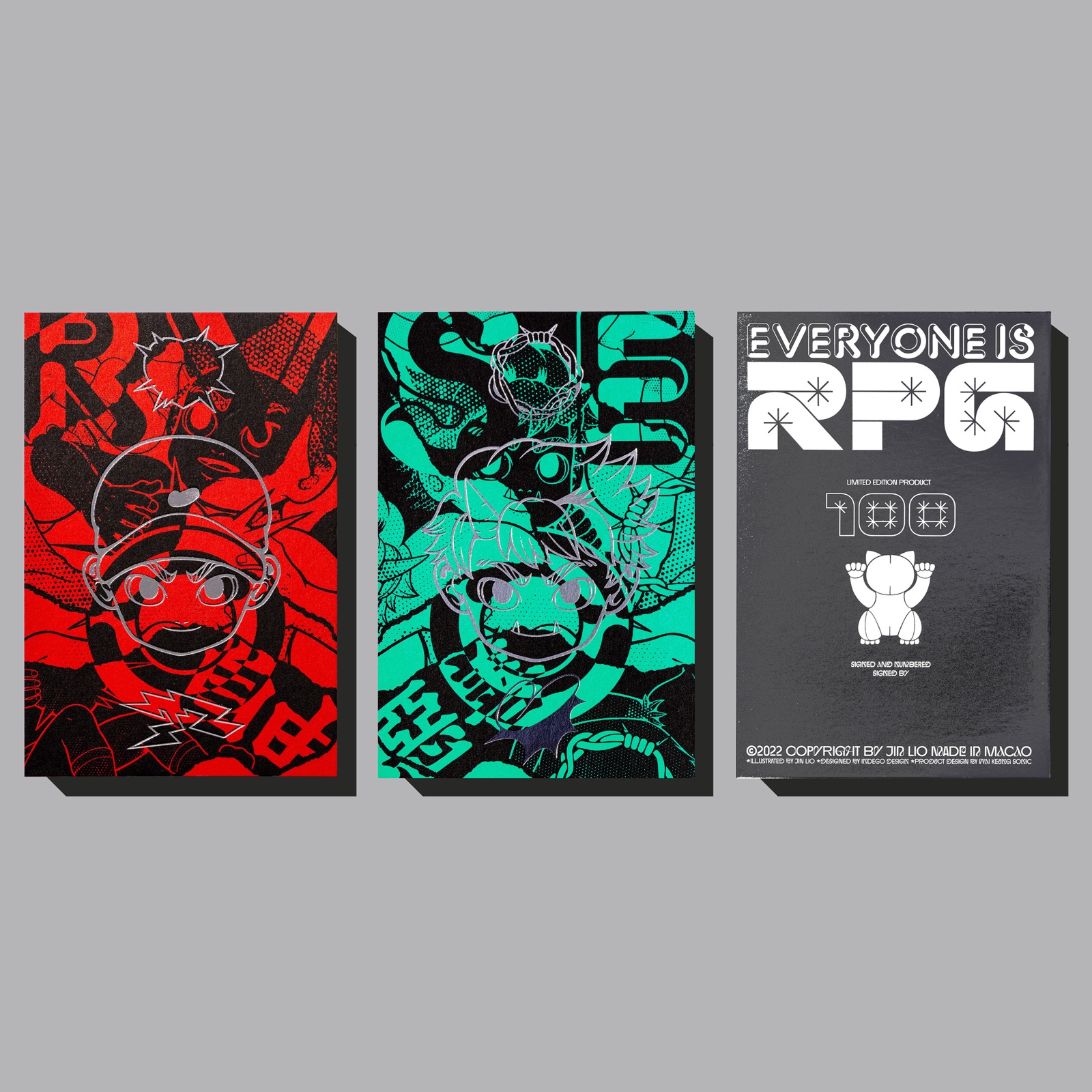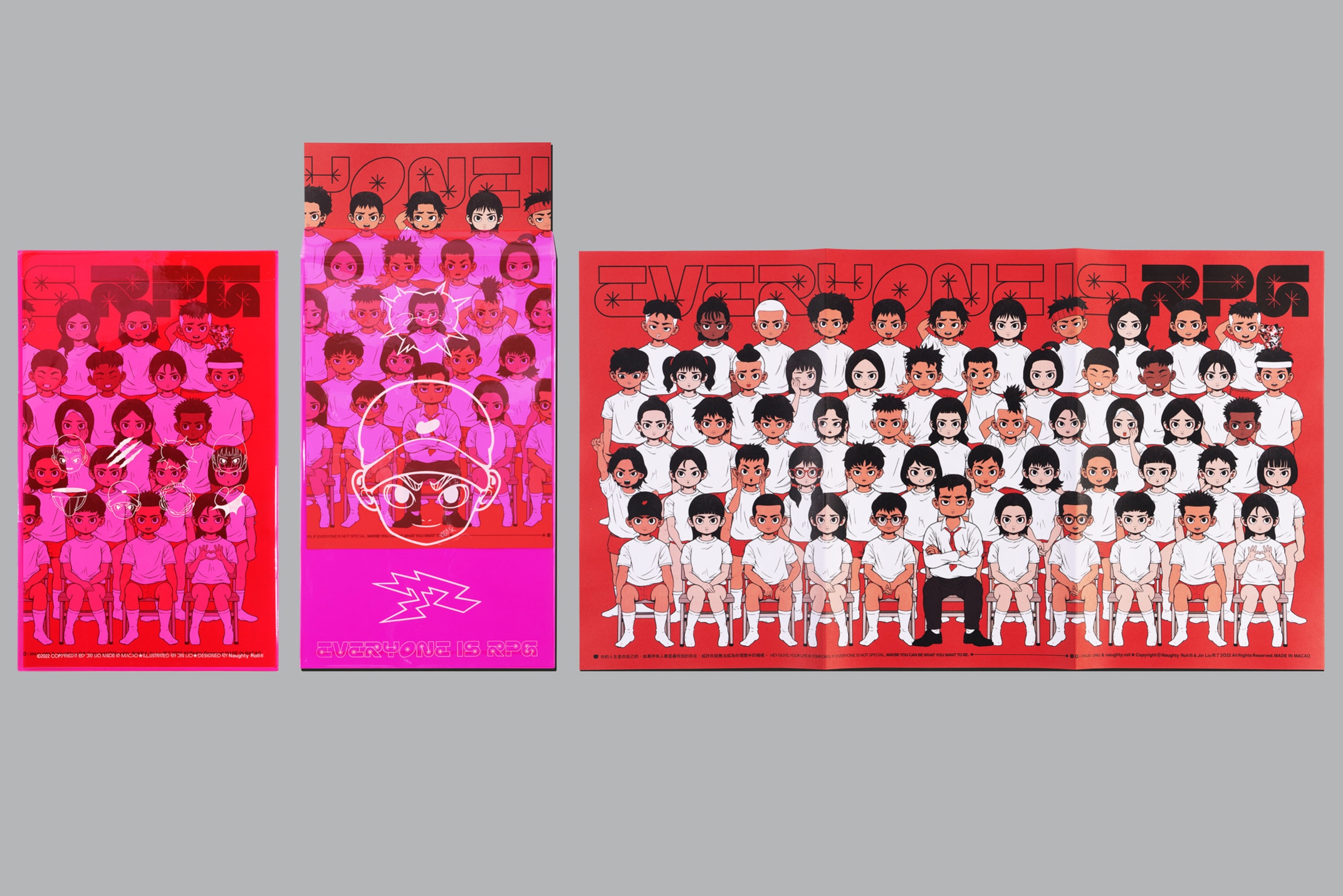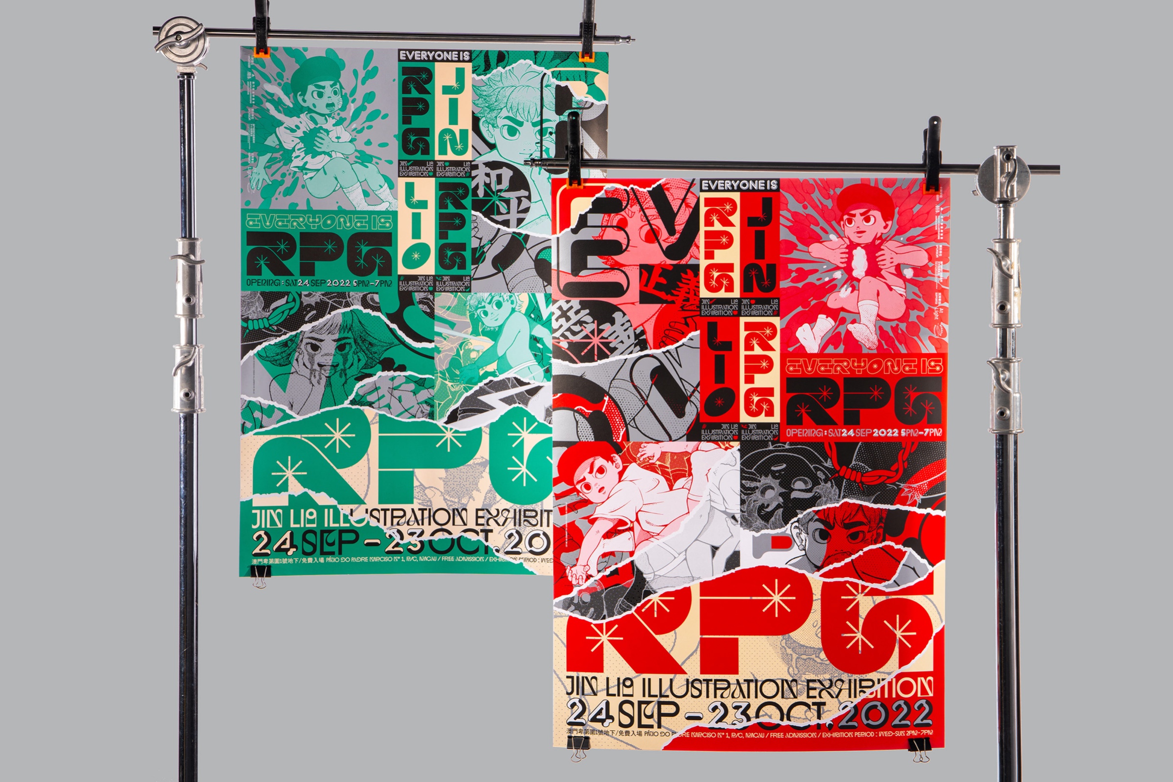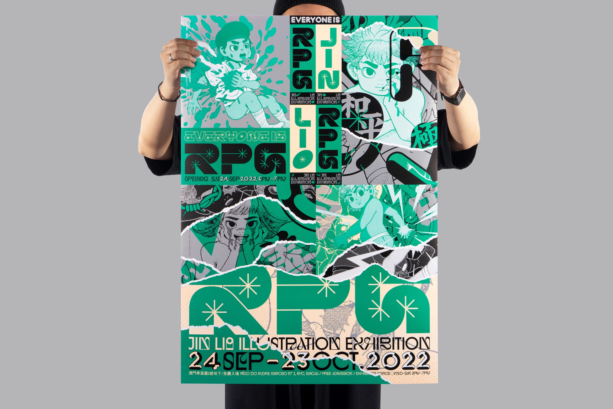 We believe that humans have both good and evil sides, and the exhibition "EVERYONE IS RPG" is a comic book style illustration by Jin Lio that delves into the various manifestations of human good and evil. The main visual design uses a variety of paper tearing effects and a large number of pixelated visual elements, as well as contrasting colours and printing effects, to set off the instability of human beings in their various extremes of character; the main visual also includes a handwritten Chinese calligraphic font of traditional Chinese thinking about the seven emotions and six sensory pleasures, creating an extraordinarily strong and gritty visual atmosphere. "EVERYONE IS RPG" means that each person plays a different role, each identity is mixed with different positive and negative personalities, and this instability and unpredictability is worth exploring and pondering.